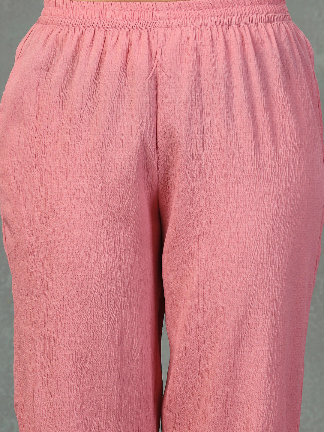 Stylum Women's Pink Solid & Embroidered Italian Crush Straight Kurta Pant Dupatta Set (KPDPINKVOOMA)