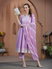 Stylum Women's Printed & Embroidered Cotton Anarkali Kurta Pant Dupatta Set (KPDLAVENDERSTAR)