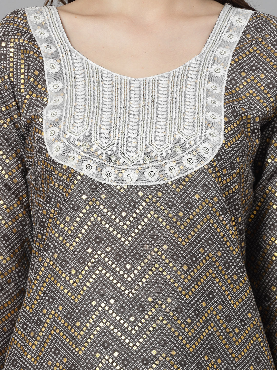 Stylum Women's Printed & Embroidered Cotton Blend Straight Kurta Pant Set (KPGREYCHIKA)