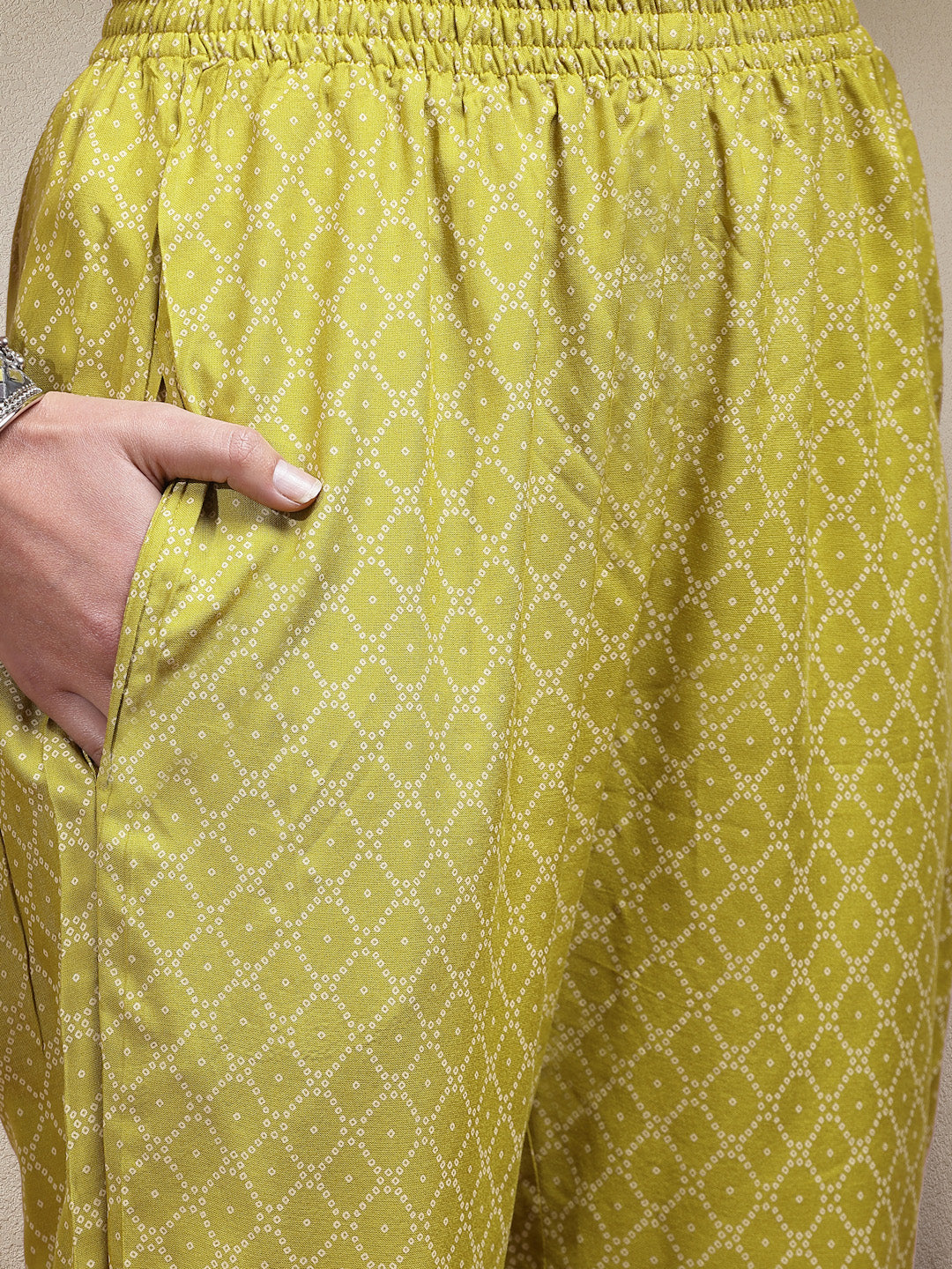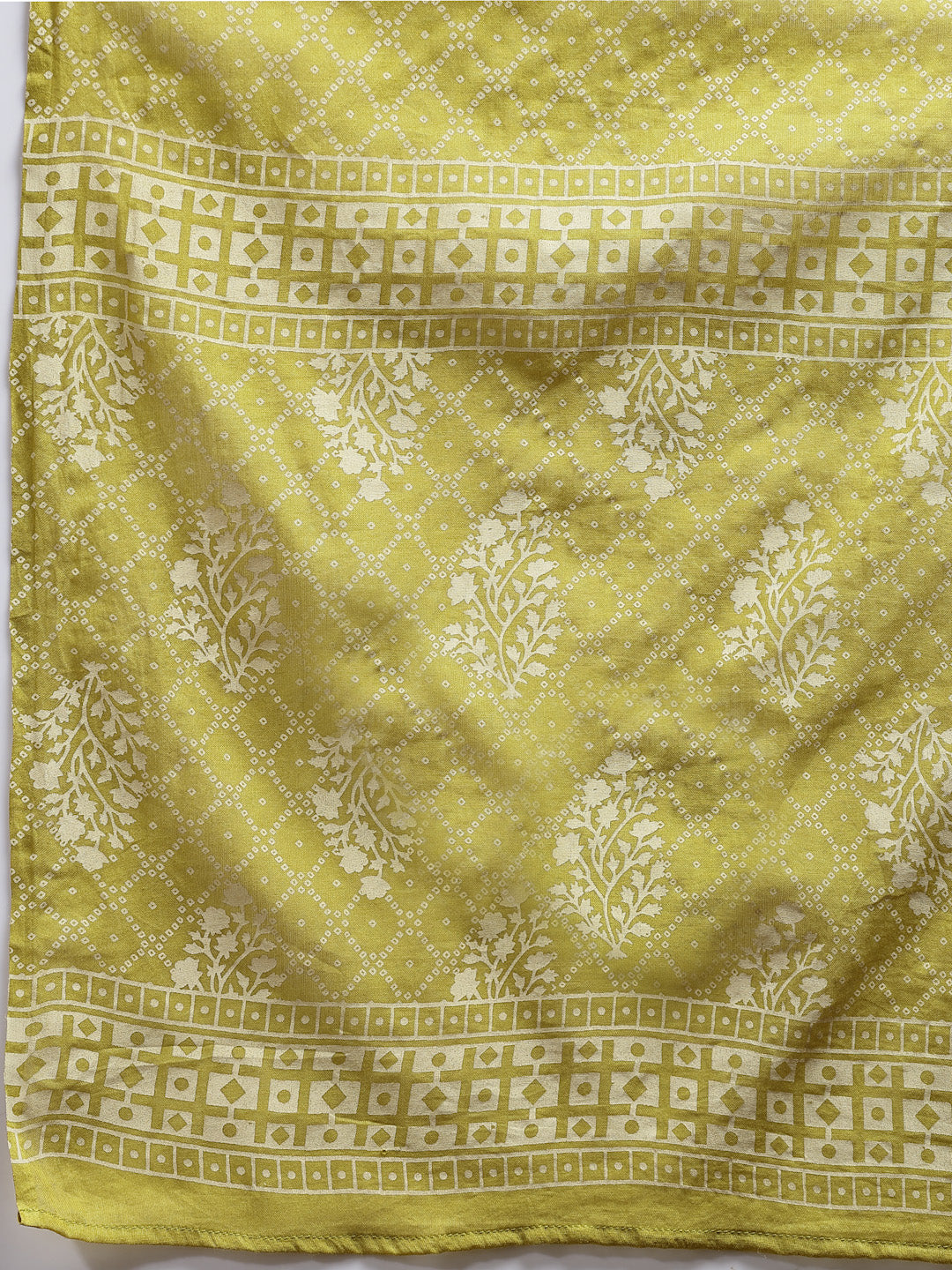 Green printed rayon straight kurta with embroidery on yoke, printed pant which has full elasticated waistband and beautiful printed cotton dupatta. Pair it with beautiful accessories like jhumkas, kadas and jutties to enhance the look. Products Kurta Length- 45" Inch, Pant Length - 38" Inch, Dupatta Length- 2.30 Mtr.
