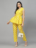 Elevate your style with our stunning Ikat printed rayon sleeveless short top and trouser set. This chic ensemble features a waist tie-up for a flattering fit, while the trouser boasts a full elasticated waistband for ultimate comfort. The trouser is designed with a full elasticated waistband for a comfortable fit. The bright yellow colour of the coord set makes it an ideal choice for day outings or special occasions. Complete your look by pairing it with smart footwear and a stylish sling. This Printed Rayon Co-Ord set is the perfect choice to elevate your fashion game.