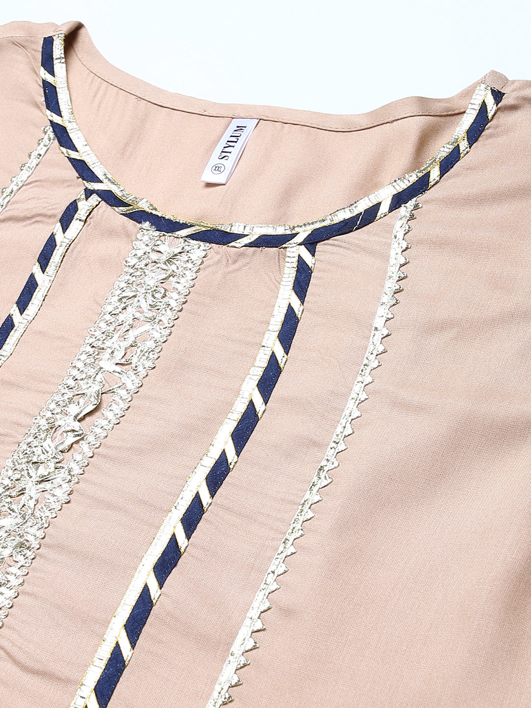 Elevate your style and make a statement with this exquisite Women's Printed Rayon Pleated Kurta Sharara Dupatta Set, designed to make you feel special and elegant. This beautiful kurta sharara set comes in a charming beige colour, crafted from high-quality rayon fabric for a soft and comfortable feel. The kurta features a solid short-length design with intricate lace detailing, adding a touch of sophistication. With its three-quarter sleeves, it offers a perfect balance between style and practicality. To complete the set, we have included a beige gold printed dupatta in mulmul fabric. This lightweight and breathable dupatta adds a graceful touch to your outfit, allowing you to drape it in various styles to suit your preference. Get this kurta sharara dupatta set today!