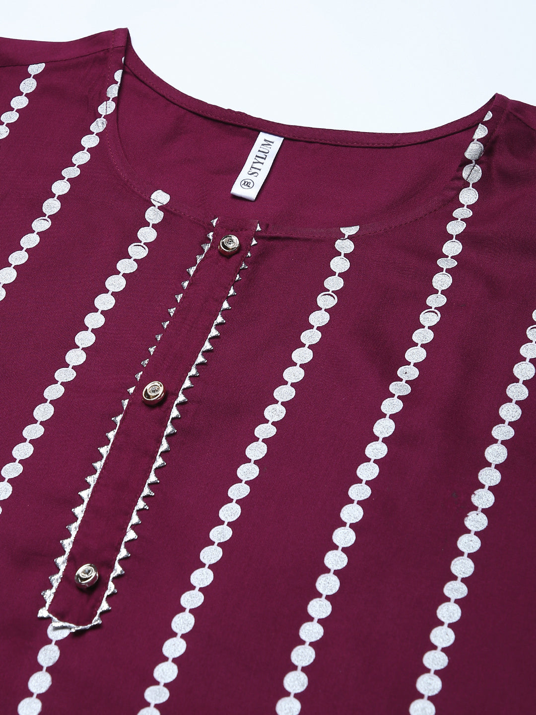 Stylum Women's Printed Rayon Straight Kurta Sharara Dupatta Set (KSDPupplesharara)