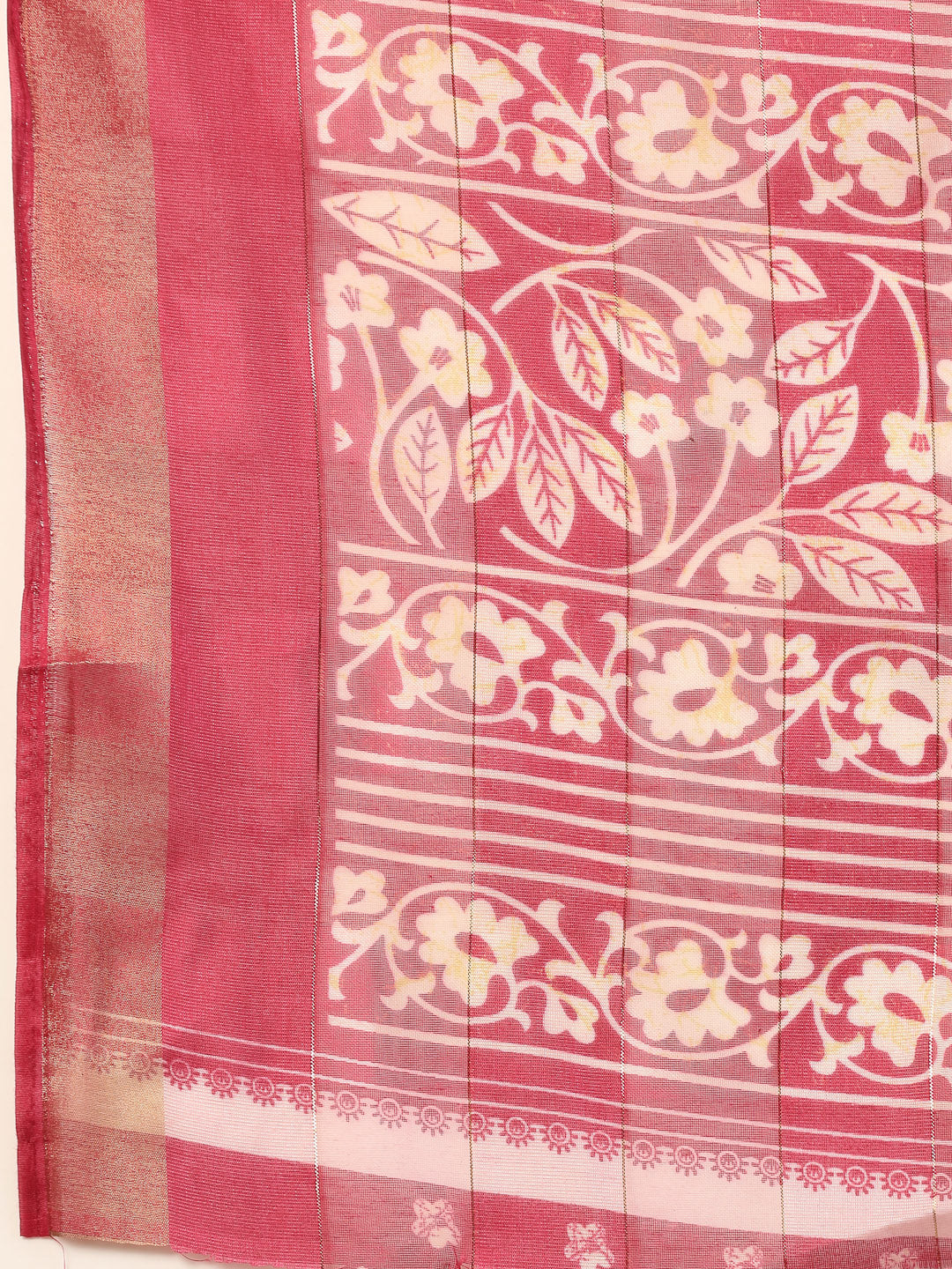 Plus Size Women's Floral Printed Cotton Pleated Kurta Palazzo Dupatta Set (KPDPINKZAYLAPLUS)