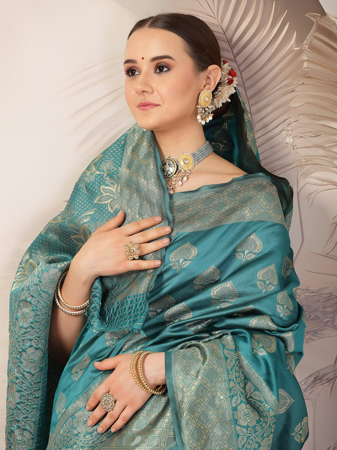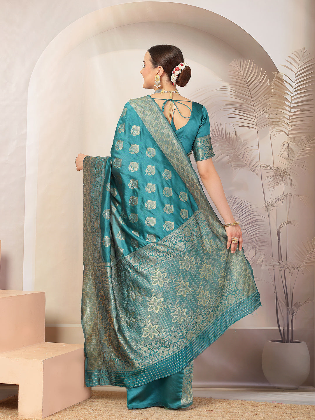 Stylum Women's Rama Green Ethnic Motifs Banarsi Woven Zari Silk Saree (SRRAMAMAGIC)