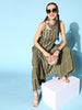 Upgrade your wardrobe with Stylum Womenââ¬â¢s Rayon printed Kurta Sharara Set, a perfect pick for those who are looking for a kurta set with a modern twist. This stunning set features an olive Khari and silver printed kurta and sharara, adorned with exquisite lace detailing on the neckline and sharara. The elegant combination of olive Khari and silver prints adds a touch of sophistication, while the lace detailing adds a feminine and delicate touch. Pair this kurta and sharara set with heels and Oxidised jewellery to elevate your style and make a stunning fashion statement. Don't miss out on this best pick that combines traditional elements with a contemporary twist.