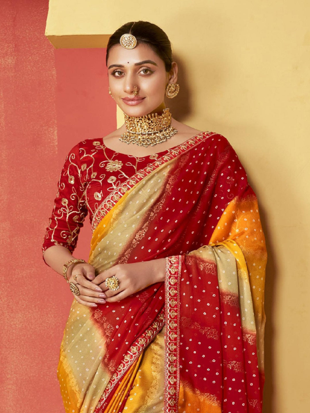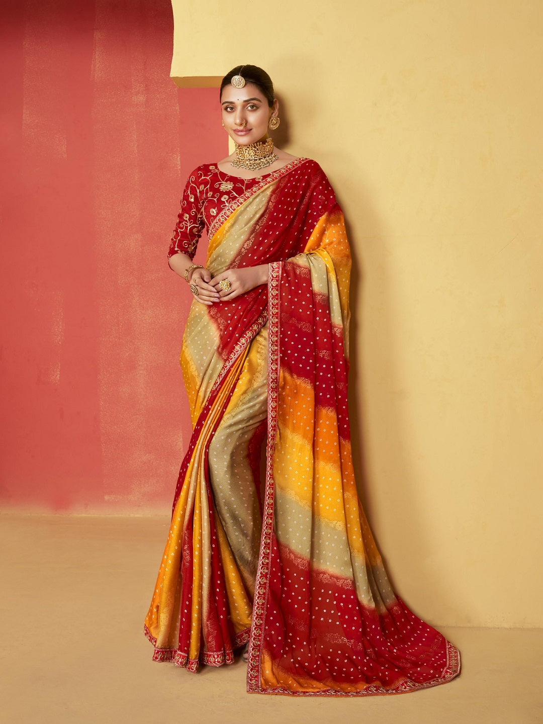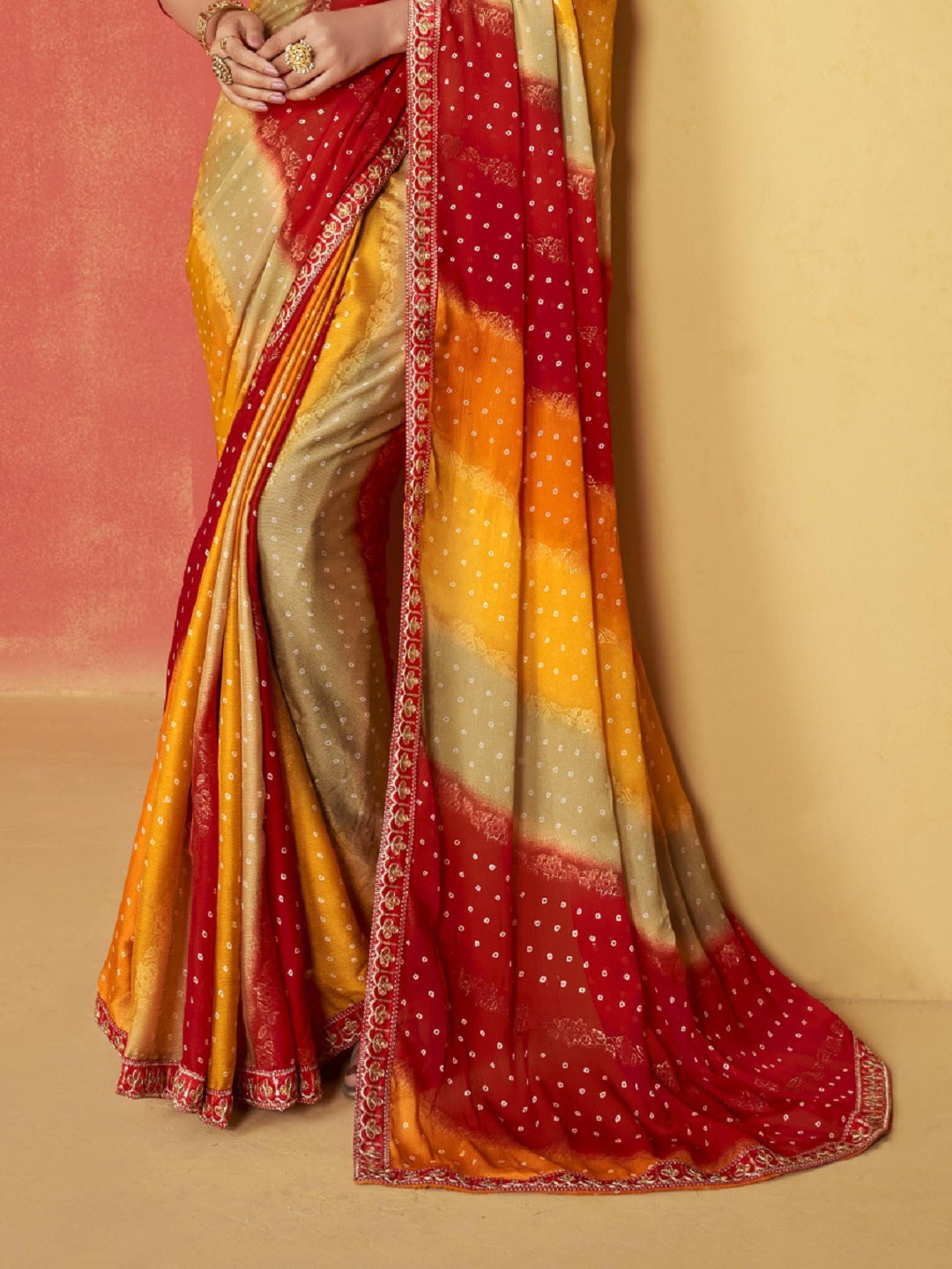 Stylum Women's Red Leheriya Coding Border Foil Chiffon Saree (SRSAANVIRED)