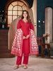 Stylum Women's Red Solid & Embroidered Silk Blend Straight Kurta Pant Dupatta Set (KPDREDMINATI)