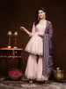 Rose gold solid short peplum kurta sharara dupatta set. Kurta has heavy embroidery on neck line. Scalloped border on sleeves & kurta bottom. Solid rayon bottom has scalloped border with fully elasticated belt. Paired with organza embroidered dupatta. Kurta Length- 34" Inch, Pant Length - 38'' Inch, Dupatta Length - 2.30 mtr Â