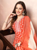 Rust khari printed flared kurta dupatta set. Flared kurta has embroidered yoke. V- neck sleeveless. Paired with tie & dye lurex dupatta. Kurta Length - 48'' Dupatta Length - 2.30 mtr.