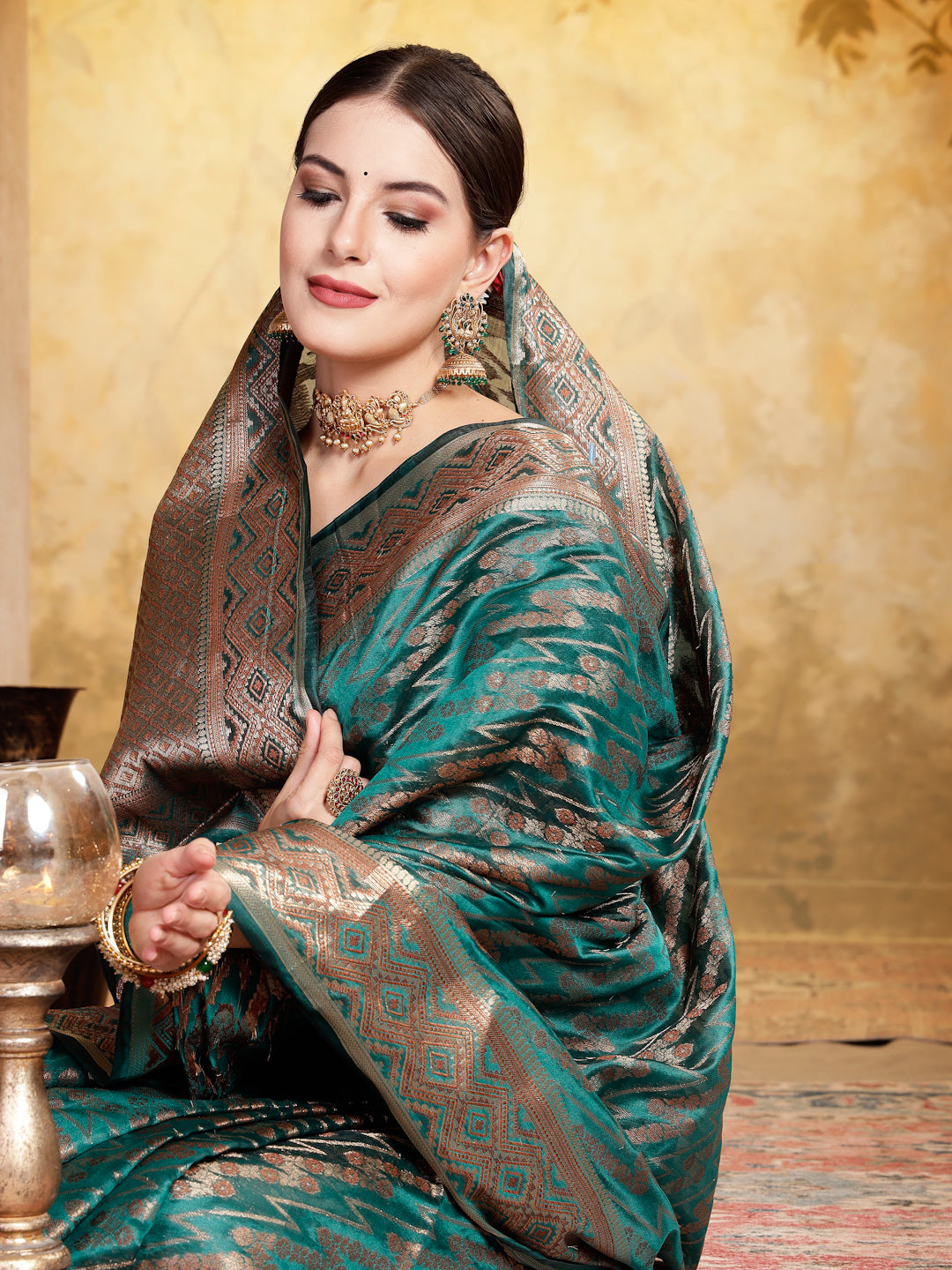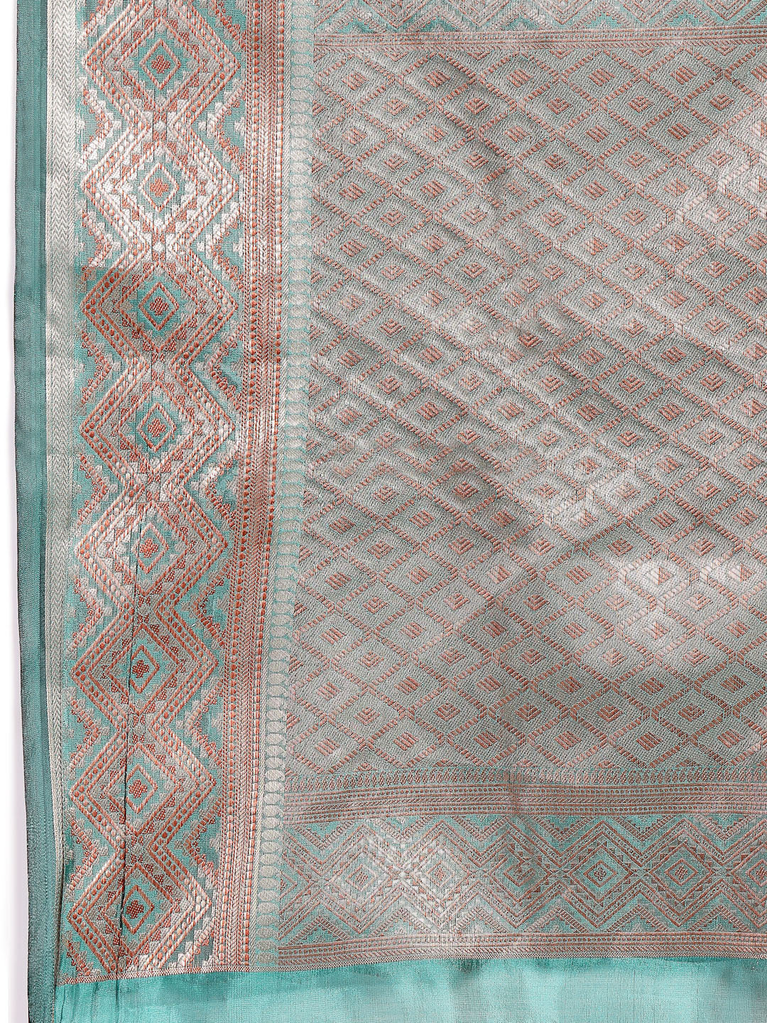 Stylum Women's Sea Green Geometric Print Woven Zari Border Organza Saree (SRJHALAKSEAGREEN)