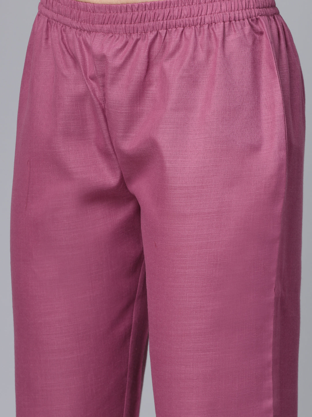 This product is a women's solid cotton blend straight kurta sets with dupatta in the color Mauve Betty. It is made from a comfortable and breathable fabric that ensures a perfect fit and all-day comfort. The kurta features a straight silhouette with a round neck and three-quarter sleeves, adding a touch of elegance to the overall look. The set also includes a matching pant and dupatta, completing the ensemble. Whether for casual or festive occasions, this stylish kurta pant dupatta set is a versatile addition to any wardrobe.