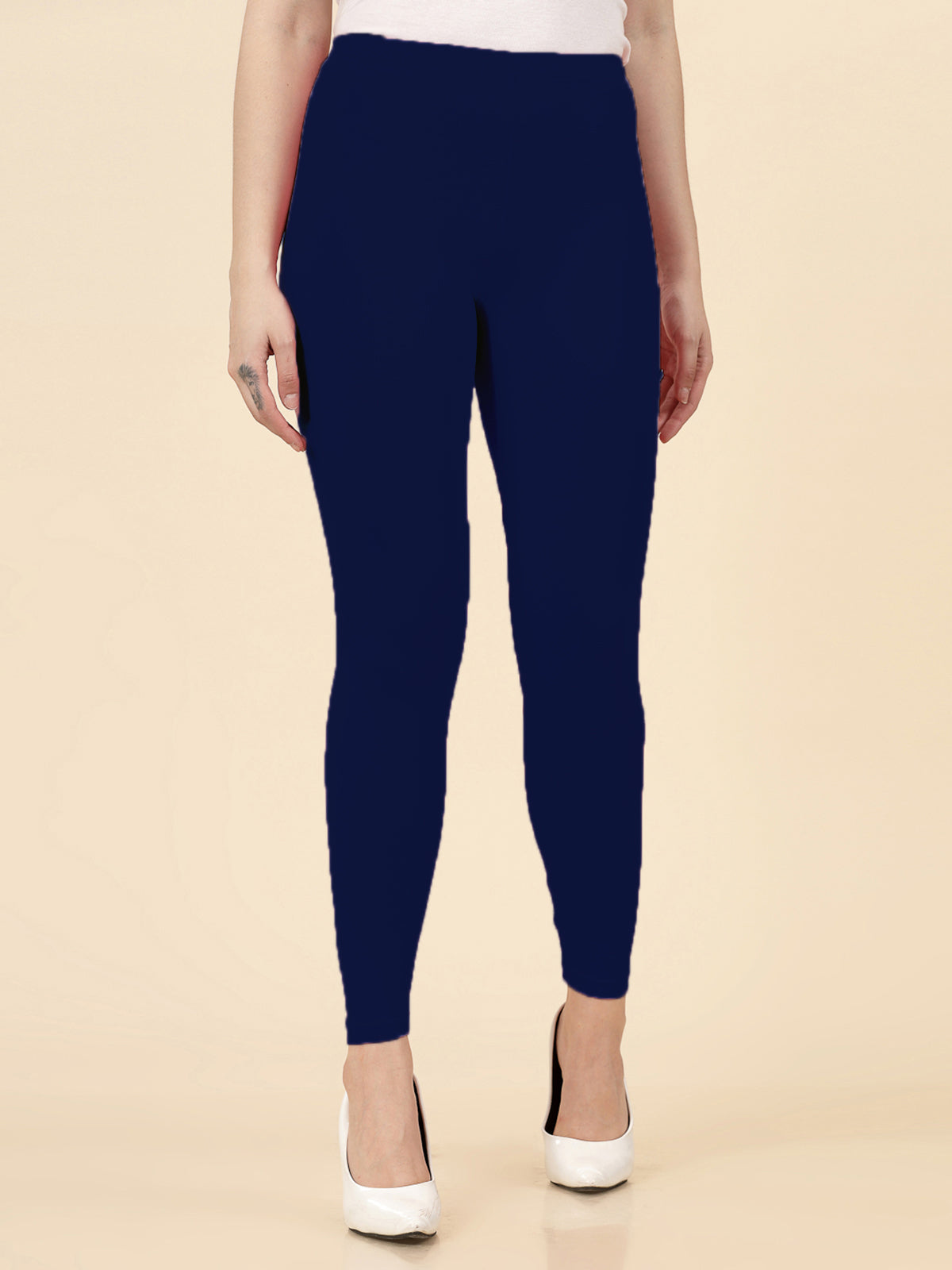 Stylum Women's Solid Mid Rise Cotton Lycra Ankle Length Leggings (ANKLE_NAVY)