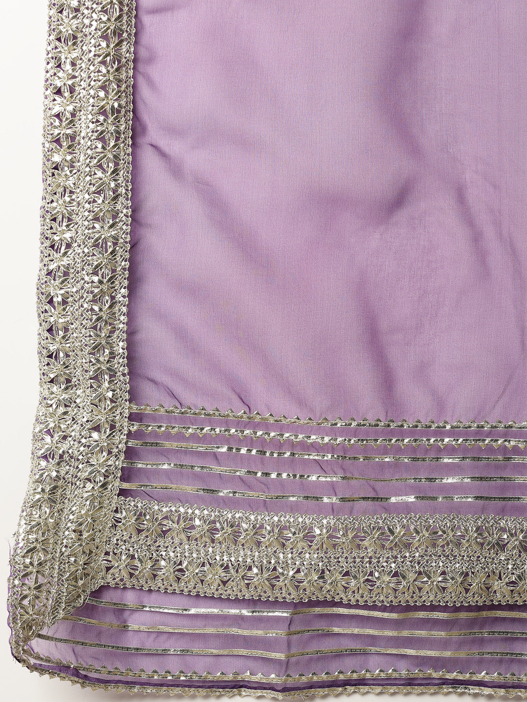 Voilet colour festive rayon anarkali kurta pant dupatta set. Kurta pant and dupatta has heavy lace detailing on edges and hem. Its a trendy V-neck kurta. Solid lace detailing rayon pant has full elasticated waist. Dupatta is in organza fabric designed with laces. Kurta Length- 48" Inch, Pant Length - 38'' Inch, Dupatta Length - 2.30 mtr.