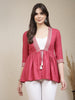 Rose solid color top in rayon fabric has border on front neckline and sleeves and front has adjustable dori tie-ups and tassels. Top Length -28" Inch.