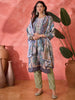 Teal embroidered satin straight kurta pant dupatta set. kurta has mirror lace on round neck, 3/4 sleeves. Fully elasticated solid pant and paired with printed silk blend dupatta with lace. Kurta Length- 45'' Inch, Pant Length- 38'' Inch, Dupatta Length-2.30 Mtr.