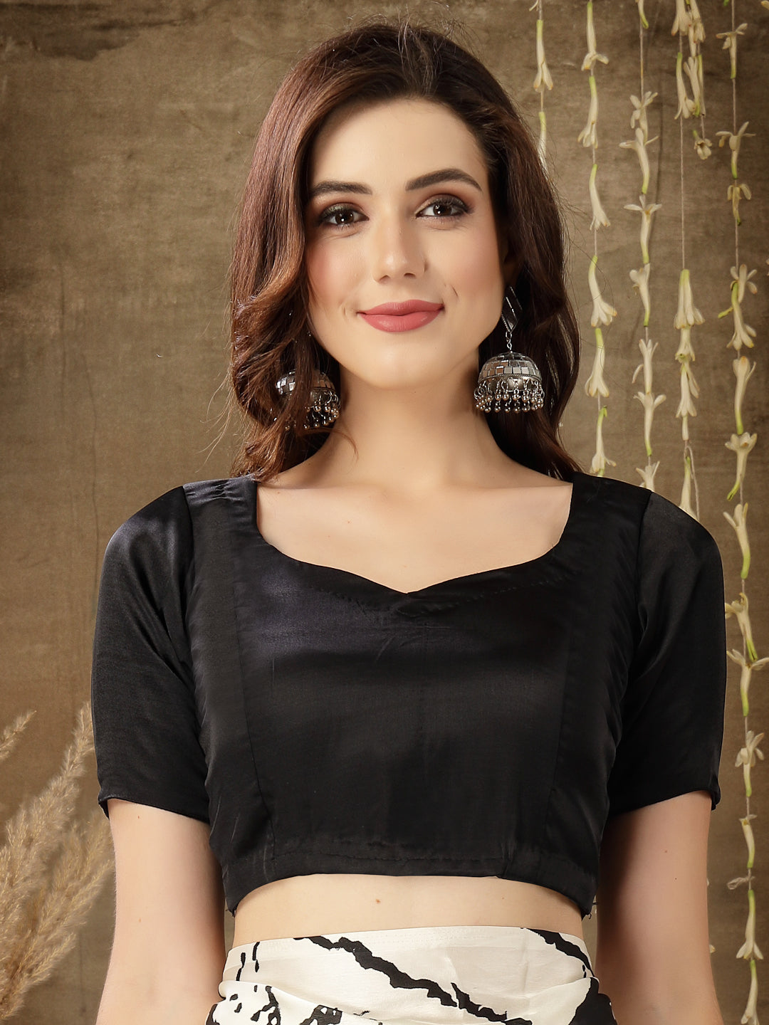 Upgrade your wardrobe with this exquisite Tie & Dye Print Satin Saree and make a stylish statement wherever you go. This tie dye saree is designed for the modern era, crafted from soft satin fabric that not only looks luxurious but feels incredibly soft against the skin. The mesmerizing tie & dye print adds a touch of uniqueness to this saree, making it stand out from the crowd. The cream and black colors blend harmoniously, creating an elegant and sophisticated look. Whether you're attending a classy get-together or a lively party, this beautiful tie and dye saree online at Stylum is the perfect choice. It effortlessly combines timeless style with contemporary charm, making it suitable for any occasion.