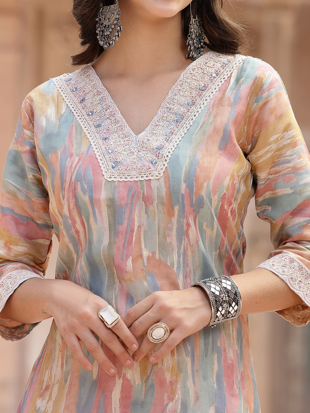 • Kurta Pattern: Tie & Dye Printed