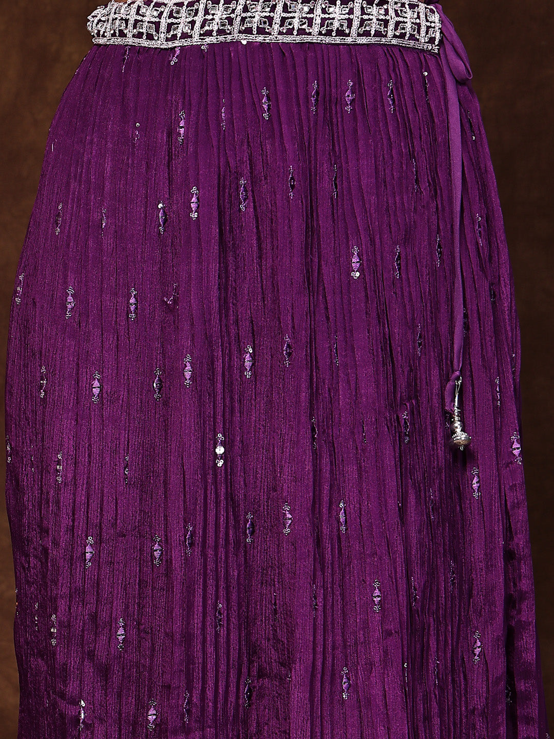 Violet embroidered georgette lehenga with blouse and dupatta. This lehenga has sleeves fabric inside. Lehenga length-42'' Inch, blouse length-15'' Inch, Dupatta Length:- 2.50 Mtr.