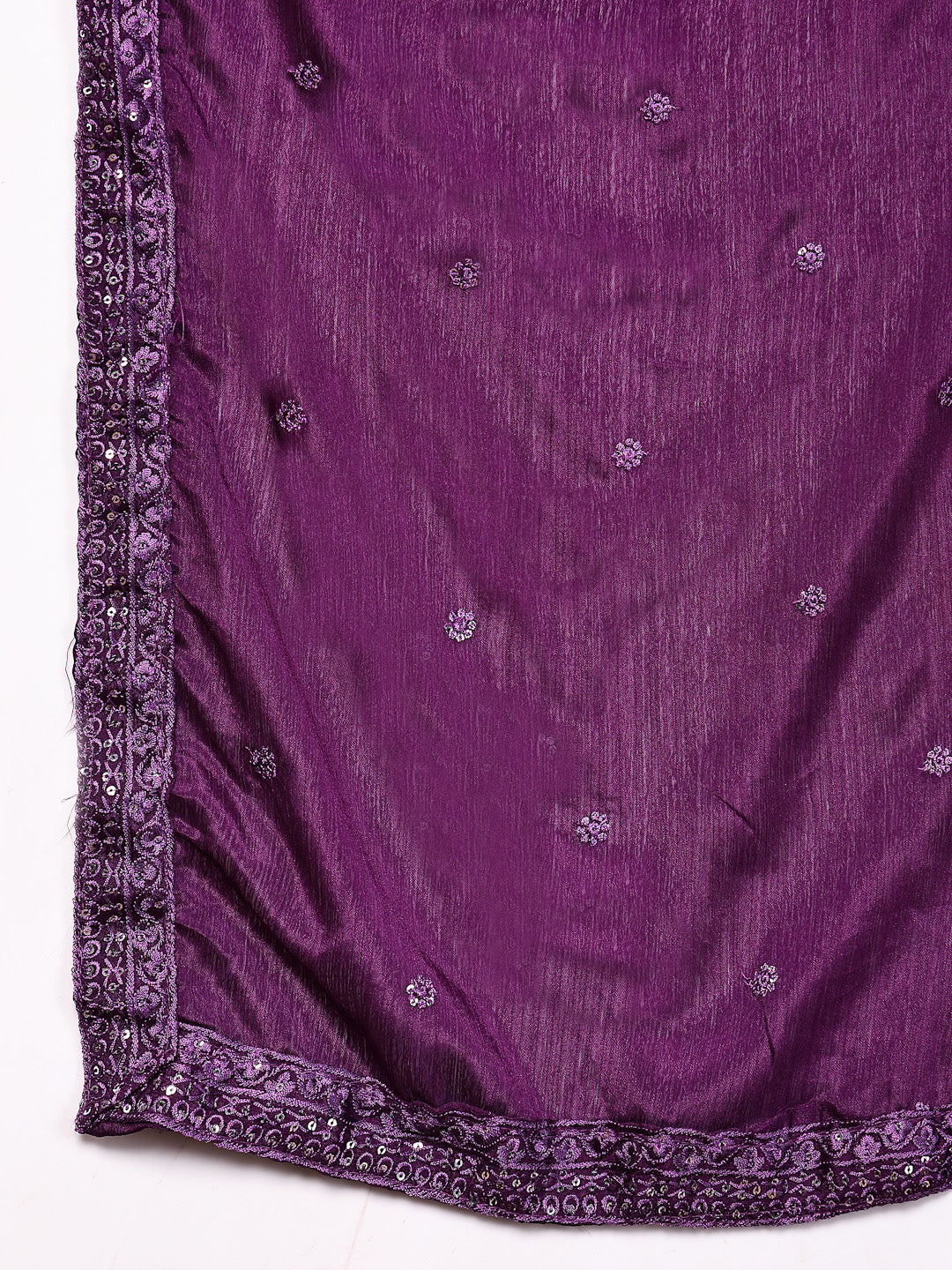 Stylum Women's Violet Embroidered Georgette Lehenga & Blouse with Dupatta (LEHVOILRADO)