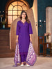 Stylum Women's Violet Solid & Embroidered Silk Blend Straight Kurta Pant Dupatta Set (KPDVOILMINATI)