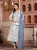 Stylum Women's White Paisley Printed & Embroidered Silk Blend A-Line Kurta Pant Dupatta Set (KPDWHITESARA)