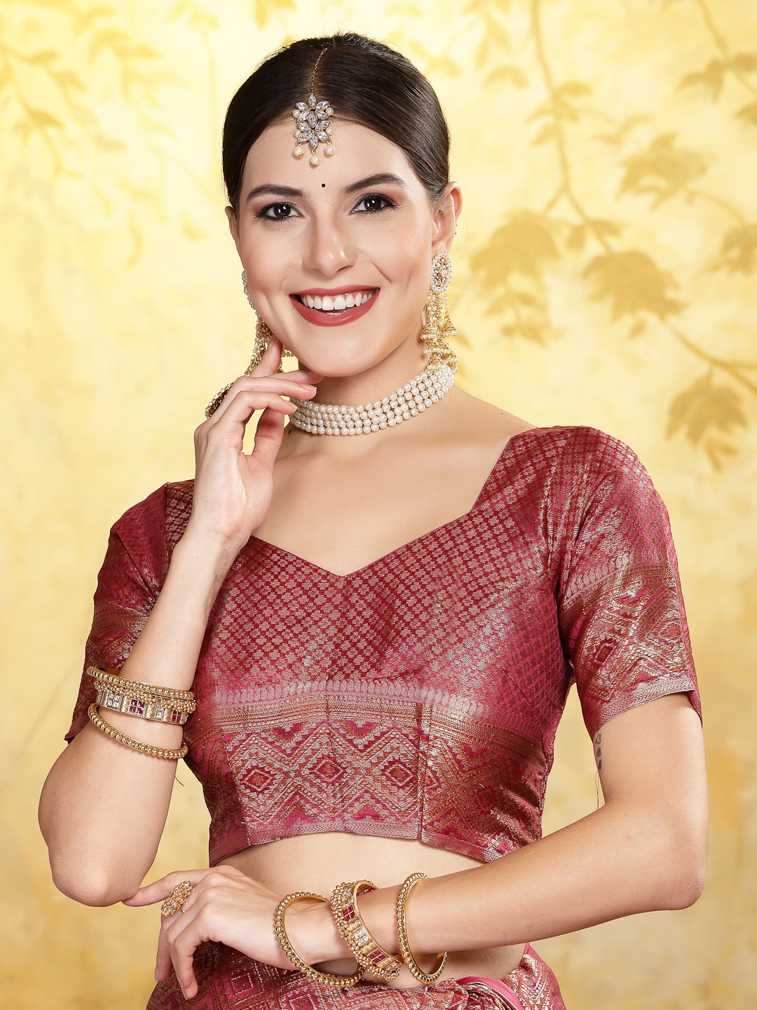 - Top Pattern: Geometric Print Woven Zari Border