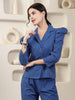 Blue katha woven cotton top and pant with collared neck. Co-ord with ruffles sleves and ankle length pant. Products Top length - 25" Inch, Pant length - 38" Inch. Pair it with flats or heels to flaunt yourself.