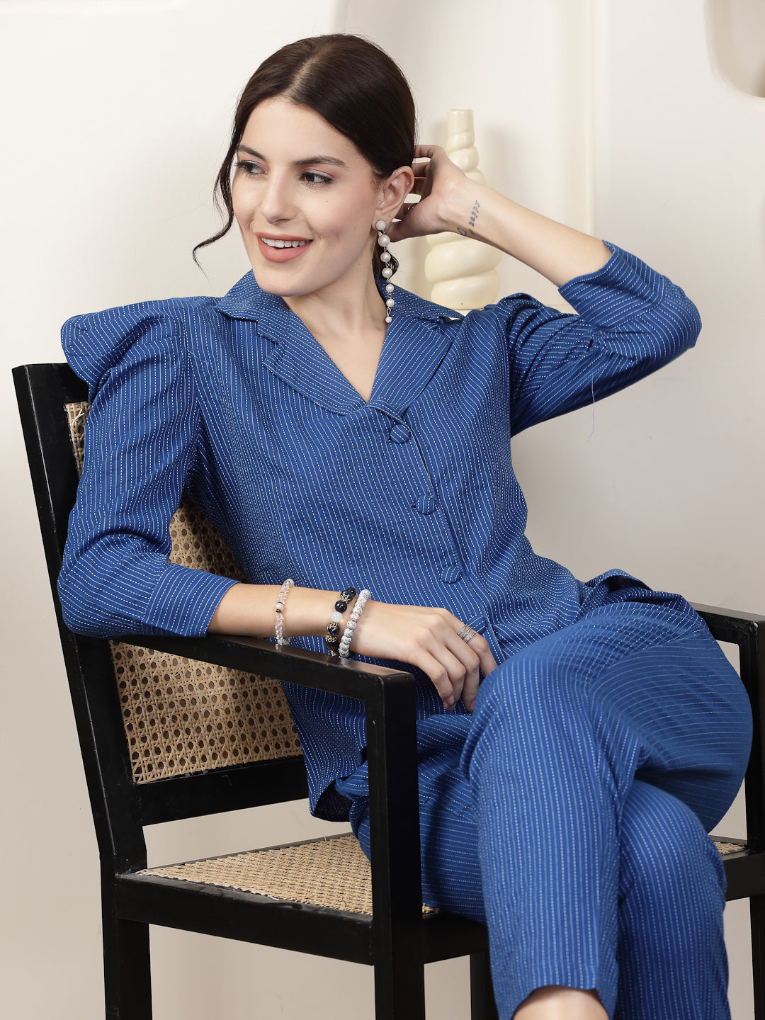 Stylum Women's Woven Design Kantha Cotton Co-Ord Set (CSBLUEMONTO)