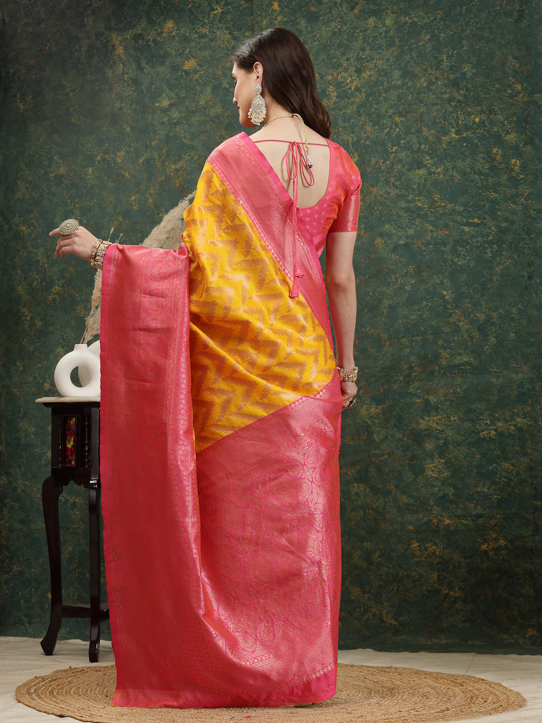 Stylum Women's Woven Design Zari Pure Silk Banarasi Saree (Mustardzara)