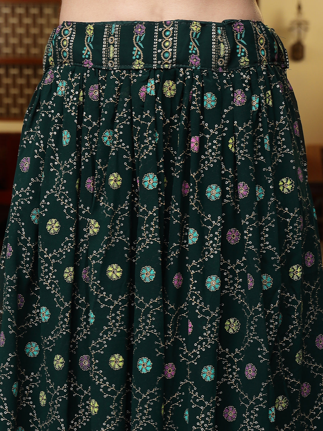 Stylum Women's Green Ethnic Motif Printed Georgette Lehenga & Blouse with Shrug (LEHGREENBLOSSOM)